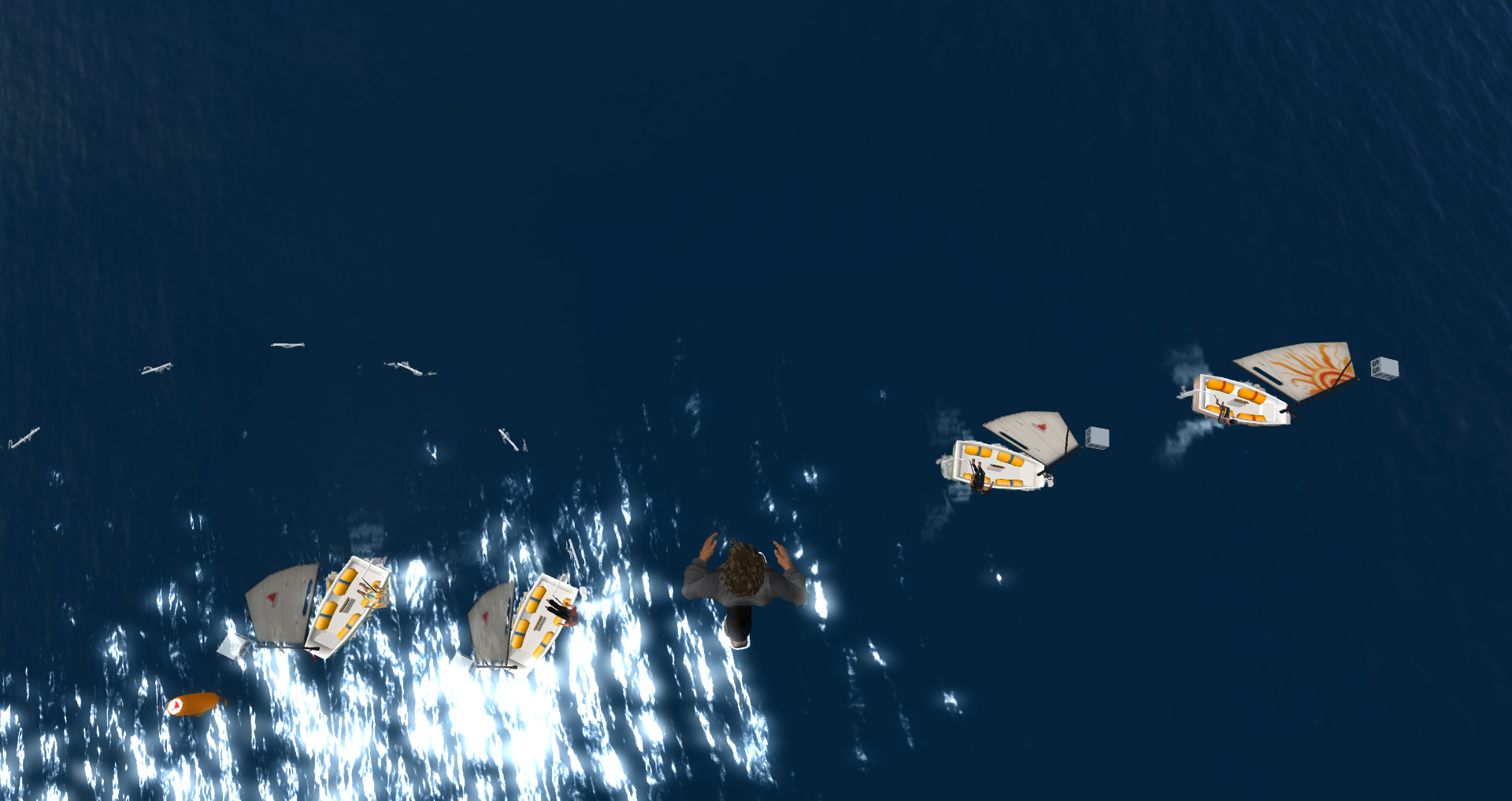 Den Windsetter an der Startlinie kurz anklicken und (use 25.01.14) in den Chat schreiben. danach (race start) und schon könnt ihr üben